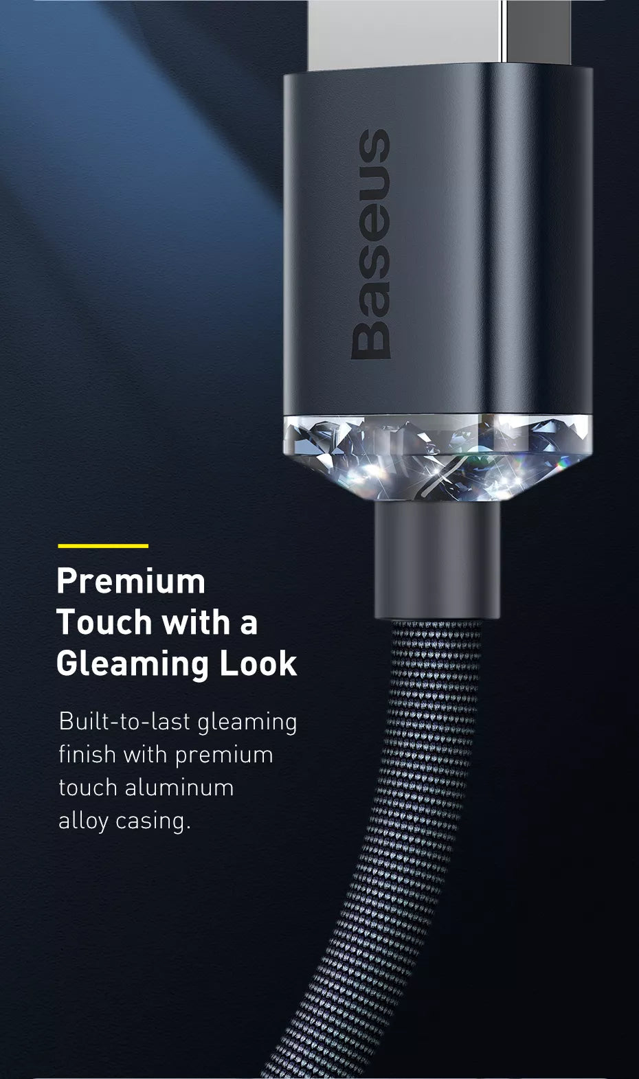 The new series of Baseus Crystal Shine cables combine the best features: high-quality workmanship, fast charging and data transfer at the same time, as well as durability and protection against overheating.
