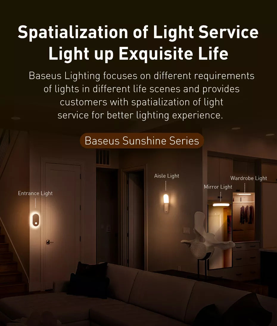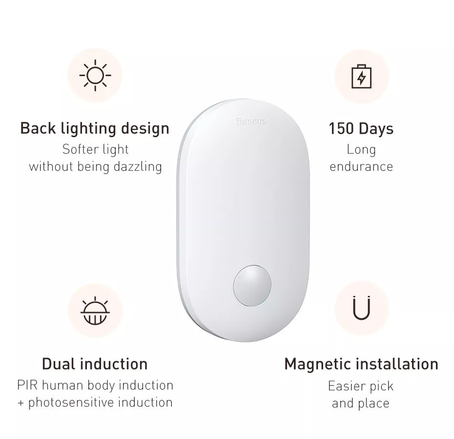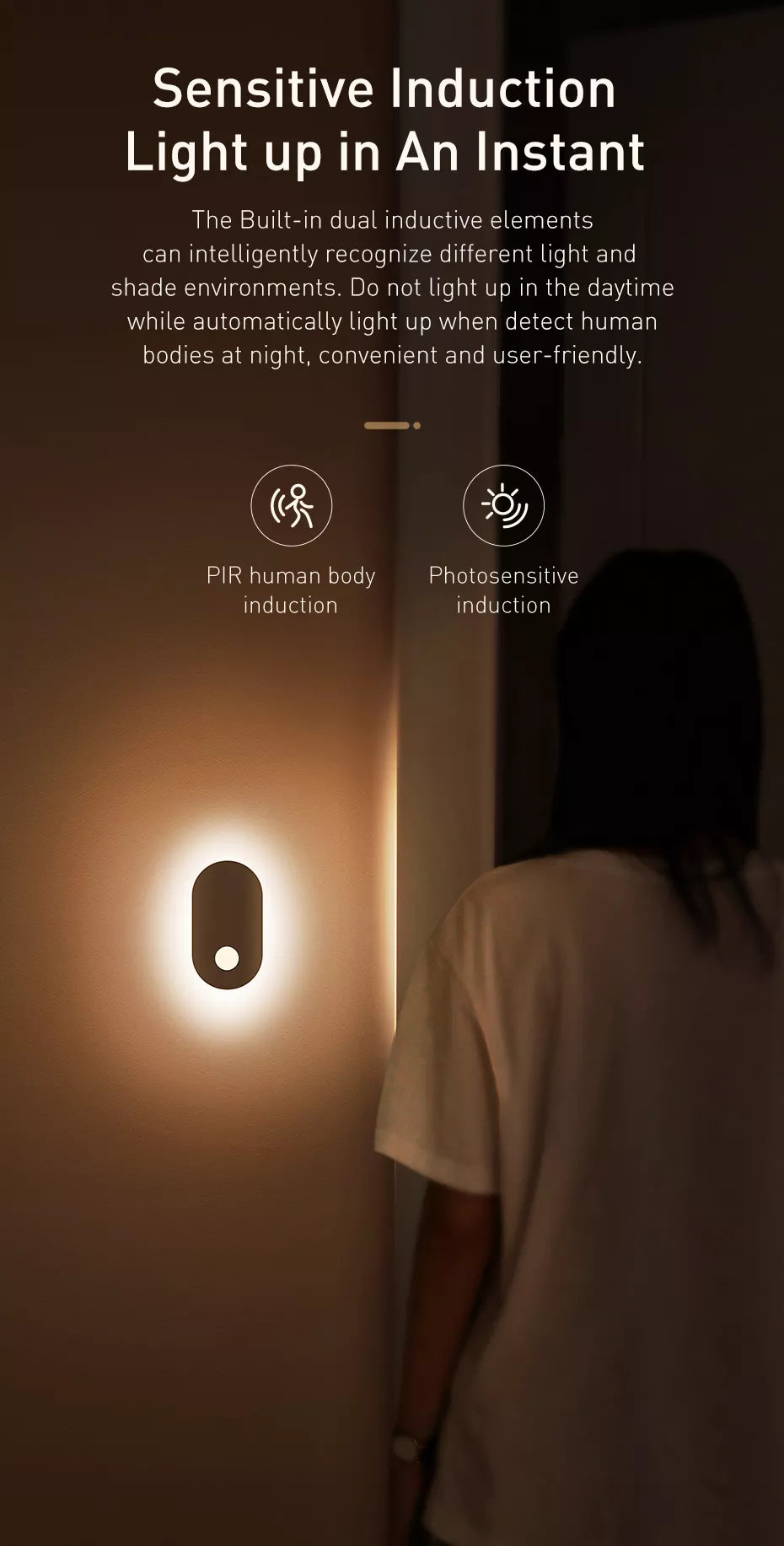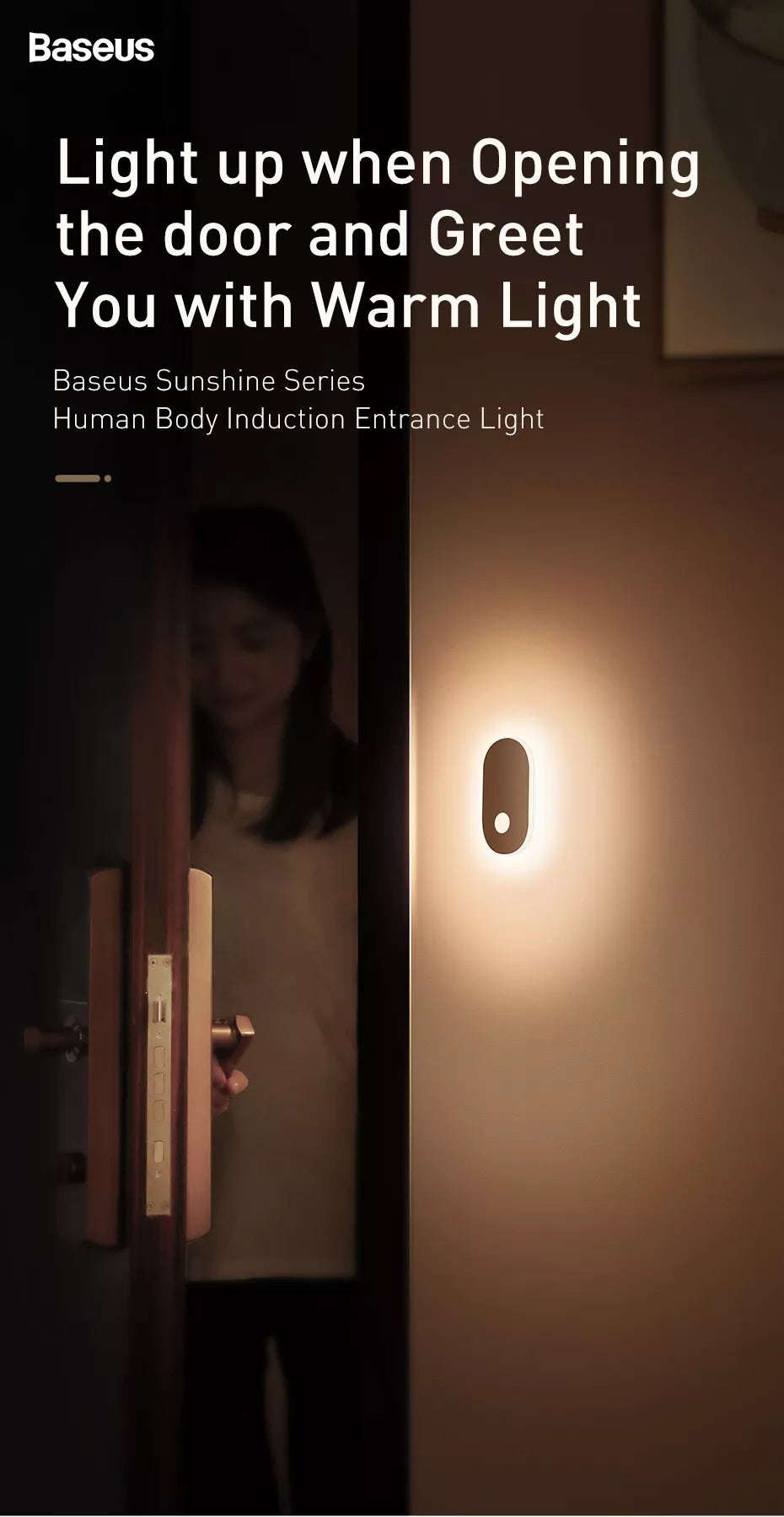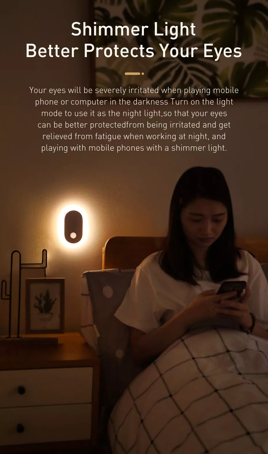 The practical Baseus night lamp delicately illuminates your path without bothering you at night. With dusk and motion sensors, it automatically lights up when you are back home at night. Its backlighting design brings softer light without being dazzling.