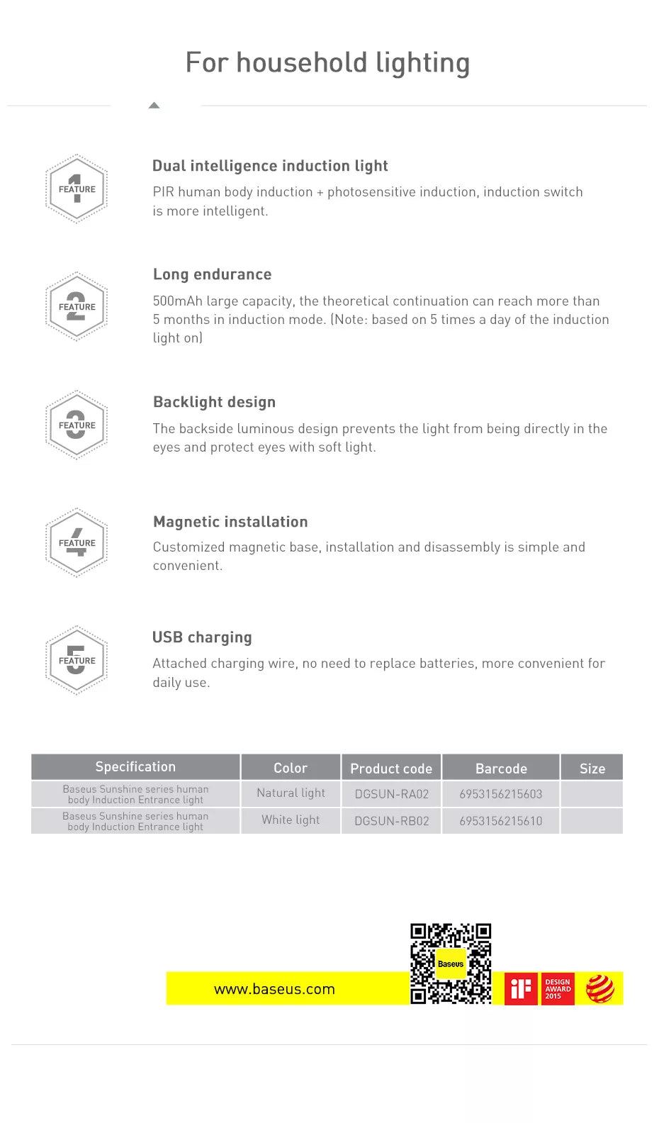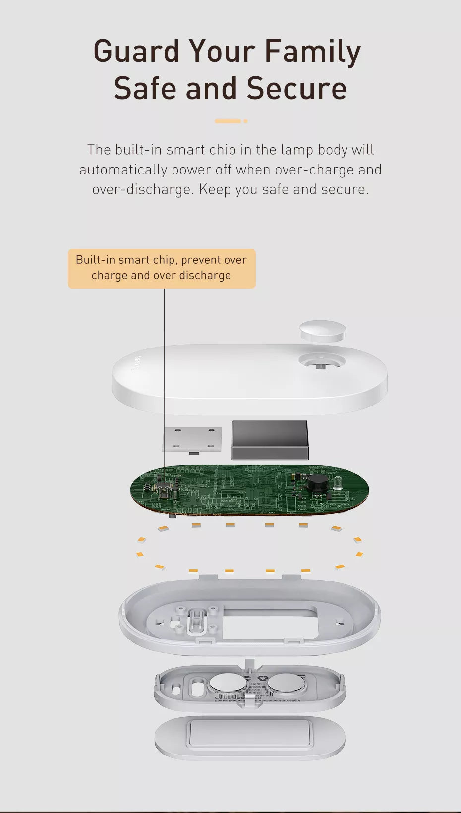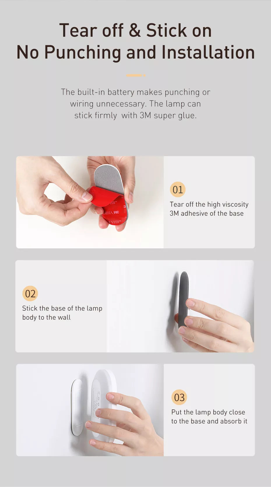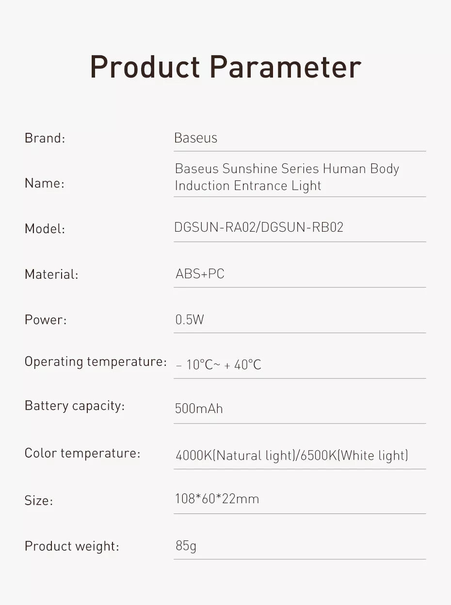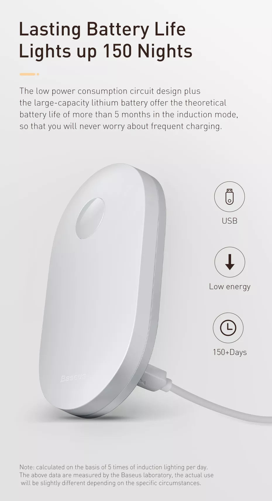 The practical Baseus night lamp delicately illuminates your path without bothering you at night. With dusk and motion sensors, it automatically lights up when you are back home at night. Its backlighting design brings softer light without being dazzling.